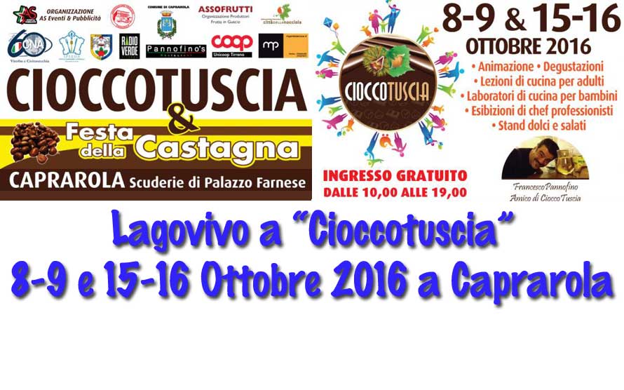Lago Vivo sara' presente con tutte le sue fantastiche degustazioni a Caprarola i giorni 8-9 e 15-16 Ottobre 2016 nell'ambito della manifestazione "Cioccotuscia". Vi aspettiamo tutti per assaggiare i nostri splendidi prodotti.