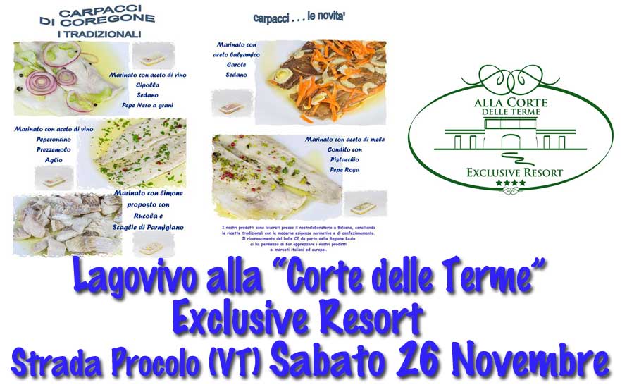 Lago Vivo vi aspetta nell'Exclusive Resort Alla Corte delle Terme, Strada Procolo, 6 - Viterbo Sabato 26 Novembre 2016 alle ore 19:00 per una fantastica serata in compagnia dei nostri prodotti e dello Chef Eugenio.